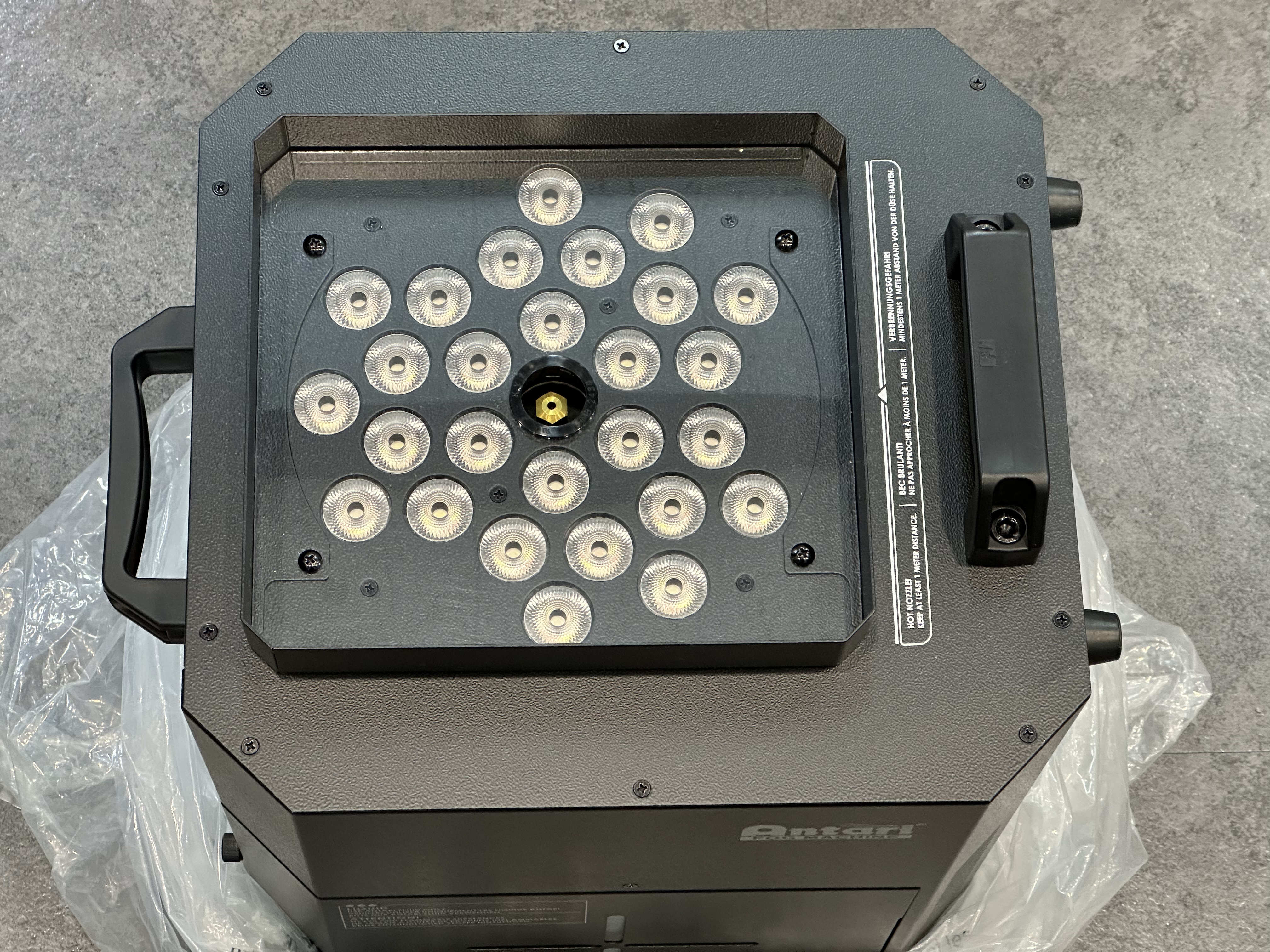 25RGBAW LED 컬러 조명과 함께 강력한 CO2 포그를 분사합니다.